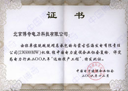 岱海項(xiàng)目"電力行業(yè)達(dá)標(biāo)投產(chǎn)"證書